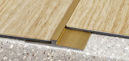 Hliníkový profil s otvormi pre zapustené skrutky sa využíva na plynulé prepojenie vinylových podláh hrúbky 3 mm.